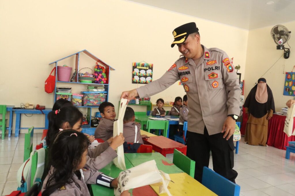 (Kompol Bagus Krisna Ekaputra bagikan langsung MBG ke anak-anak TK Bhayangkari 04 Tanjungpandan)